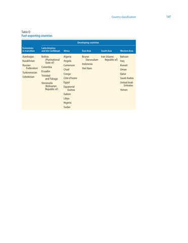Table D Fuel-exporting countries Developing countries Economies in transition