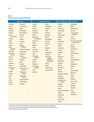 Table E Economies by per capita GNI in 2012a High-income