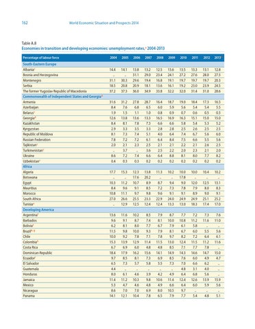 Table A.8 Economies in transition and developing economies: unemployment rates,a 2004-2013 Percentage of labour force