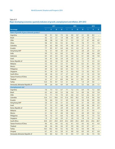 Table A.11 Major developing economies: quarterly indicators of growth, unemployment and inflation, 2011-2013 2011 Percentage