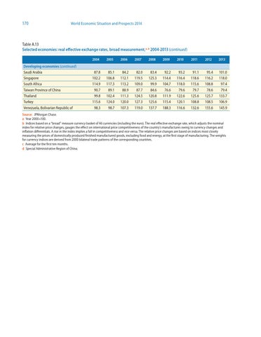 Table A.13 Selected economies: real effective exchange rates, broad measurement,a, b 2004-2013 (continued) 2004