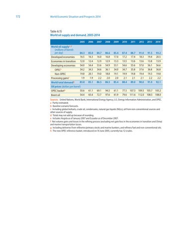 Table A.15 World oil supply and demand, 2005-2014