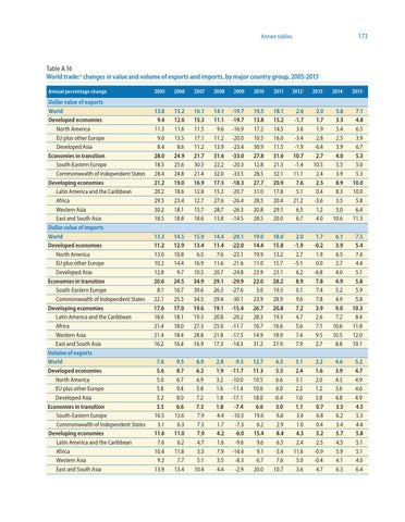 Table A.16 World trade:a changes in value and volume of exports and imports, by major country group, 2005-2015 Annual percentage change