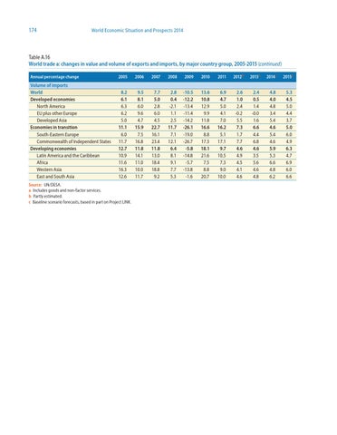 Table A.16 World trade a: changes in value and volume of exports and imports, by major country group, 2005-2015 (continued) Annual percentage change