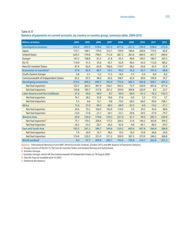 Table A.17 Balance of payments on current accounts, by country or country group, summary table, 2004-2012 Billions of dollars