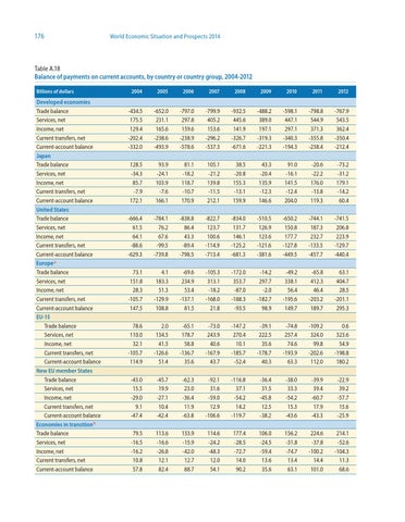 Table A.18 Balance of payments on current accounts, by country or country group, 2004-2012 Billions of dollars