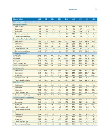 Economies in transitionb (continued) South-Eastern Europe Trade balance Services, net