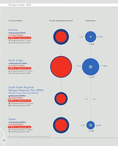 Sudan Requested $986m Funded $547m 55% of requirement met Targeted people 6.9 million Funding per person $79 Sources: FTS, inter-agency appeal documents, ReliefWeb, UNHCR