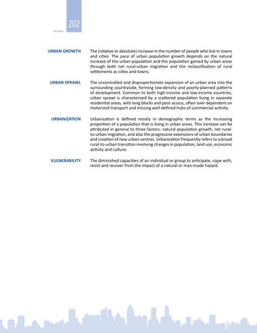 Urbanization is defined mostly in demographic terms as the increasing proportion of a population that is living in urban areas. This increase can be attributed in general to three factors: natural population growth, net ruralto-urban migration, and also the progressive extensions of urban boundaries and creation of new urban centres. Urbanization frequently refers to a broad rural-to-urban transition involving changes in population, land use, economic activity and culture.