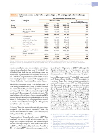 remains essentially the same. Importantly, the new estimate reflects the results of the first joint UNODC/WHO/ UNAIDS/World Bank data and methodology review and independent expert consultations conducted at the end of 2013, which led to updated national estimates for 36 countries, including the three countries with large populations (China, the Russian Federation and the United States).