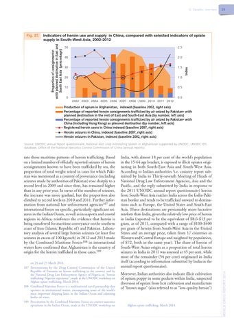 Fig. 27. Indicators of heroin use and supply in China, compared with selected indicators of opiate supply in South-West Asia, 2002-2012