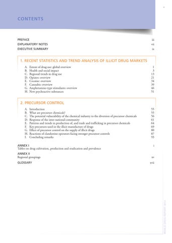 2. PRECURSOR CONTROL A. Introduction B. What are precursor chemicals? C. The potential vulnerability of the chemical industry to the diversion of precursor chemicals D. Response of the inter-national community E. Patterns and trends in production of, and trade and trafficking in precursor chemicals F. Key precursors used in the illicit manufacture of drugs G. Effect of precursor control on the supply of illicit drugs H. Reactions of clandestine operators facing stronger precursor controls I. Concluding remarks ANNEX I
