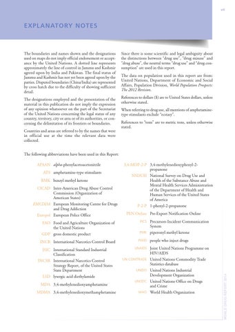 When referring to drug use, all mentions of amphetaminetype stimulants exclude “ecstasy”. References to “tons” are to metric tons, unless otherwise stated.