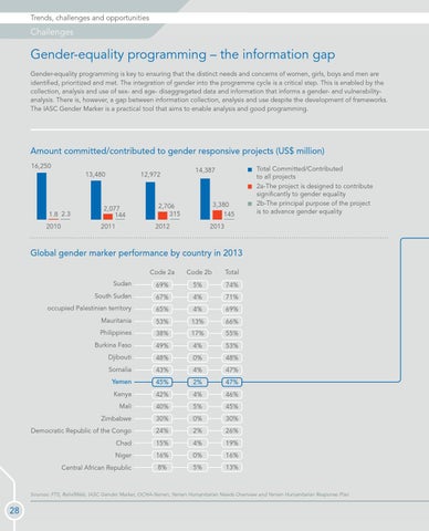 Sources: FTS, ReliefWeb, IASC Gender Marker, OCHA-Yemen, Yemen Humanitarian Needs Overview and Yemen Humanitarian Response Plan
