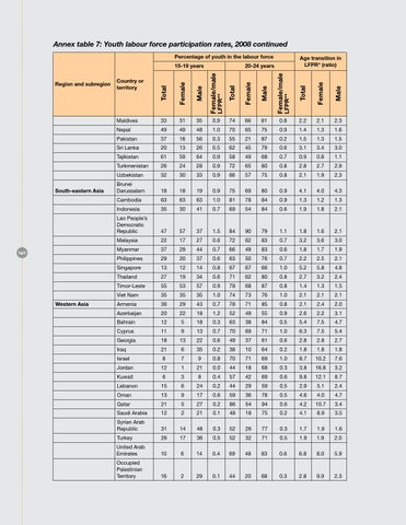 Annex table 7: Youth labour force participation rates, 2008 continued Percentage of youth in the labour force 15-19 years Region and subregion