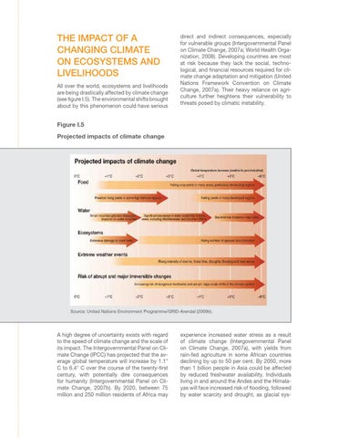 The impact of a changing climate on ecosystems and livelihoods All over the world, ecosystems and livelihoods are being drastically affected by climate change (see figure I.5). The environmental shifts brought about by this phenomenon could have serious