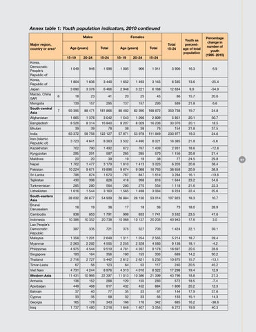 cortiscontinued do diamcore euis ercidunt am, quip etueliquistable ad tem1:velendiamet utat accummy niat, Annex Youth population indicators, 2010