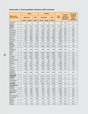 Annex table 1: Youth population indicators, 2010 continued Males Major region, country or area*