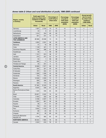 Annex table 2: Urban and rural distribution of youth, 1990-2005 continued