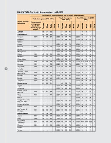 Annex table 3: Youth literacy rates, 1985-2008 Percentage of youth population that is literate, by age and sex Youth literacy rate (1995-2004)