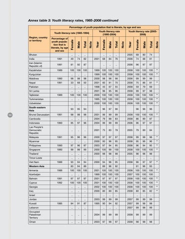 alisim vel er atis nibh erat auguer sequismolore Annex table 3: Youth literacycorrates, 1985-2008 continued Duis augiamet,