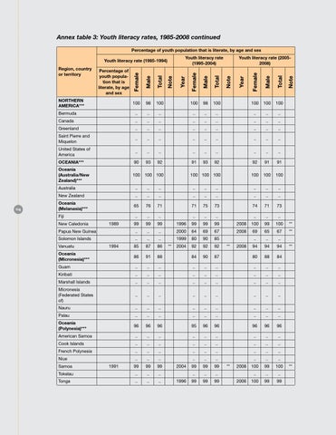 Annex table 3: Youth literacy rates, 1985-2008 continued Percentage of youth population that is literate, by age and sex Youth literacy rate (1995-2004)