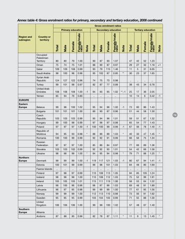 Annex table 4: Gross enrolment ratios for primary, secondary and tertiary education, 2008 continued Gross enrolment ratios Primary education Region and subregion