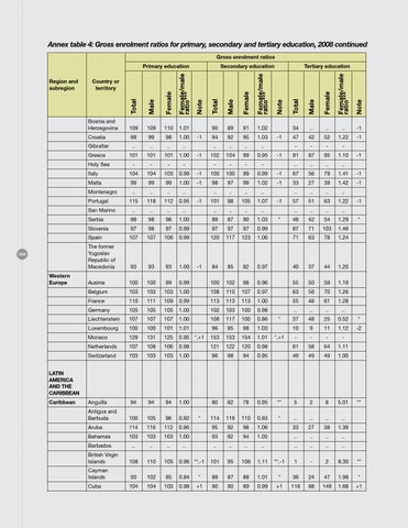 Annex table 4: Gross enrolment ratios for primary, secondary and tertiary education, 2008 continued Gross enrolment ratios Primary education Region and subregion