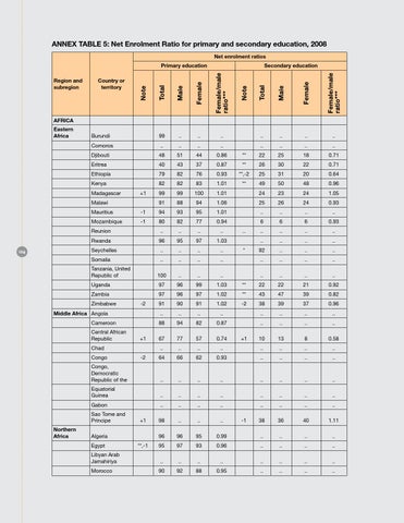 Annex table 5: Net Enrolment Ratio for primary and secondary education, 2008 Net enrolment ratios Primary education Region and subregion