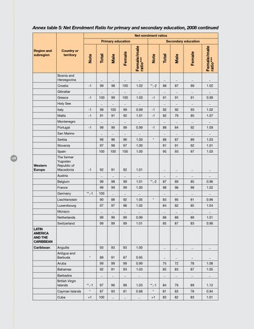 Annex table 5: Net Enrolment Ratio for primary and secondary education, 2008 continued Net enrolment ratios Primary education Region and subregion