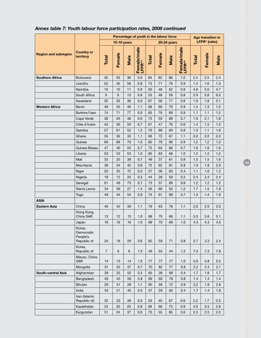 Annex table 7: Youth labour force participation rates, 2008 continued Percentage of youth in the labour force 15-19 years