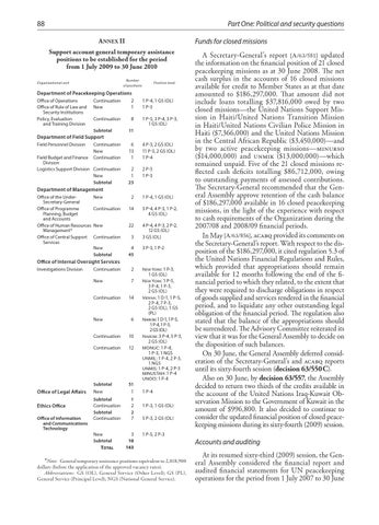 A nnex II Support account general temporary assistance positions to be established for the period from 1 July 2009 to 30 June 2010 Number of positions