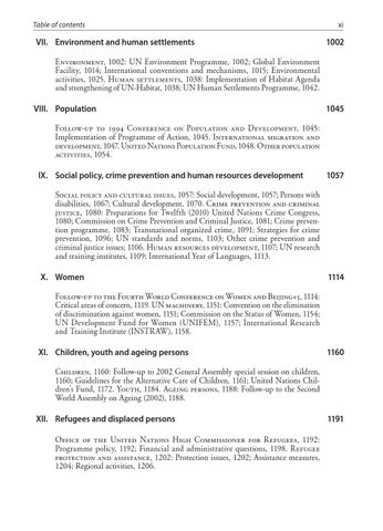 Social policy and cultural issues, 1057: Social development, 1057; Persons with disabilities, 1067; Cultural development, 1070. Crime prevention and criminal justice, 1080: Preparations for Twelfth (2010) United Nations Crime Congress, 1080; Commission on Crime Prevention and Criminal Justice, 1081; Crime prevention programme, 1083; Transnational organized crime, 1091; Strategies for crime prevention, 1096; UN standards and norms, 1103; Other crime prevention and criminal justice issues; 1106. Human resources development, 1107; UN research and training institutes, 1109; International Year of Languages, 1113.