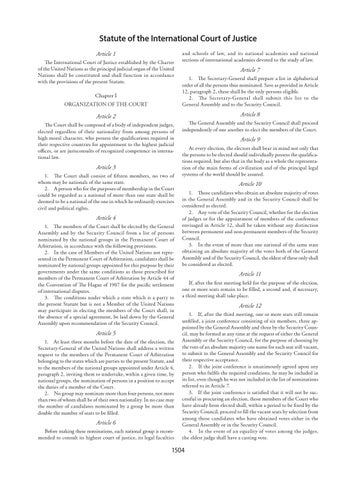 Statute of the International Court of Justice Article 1 The International Court of Justice established by the Charter of the United Nations as the principal judicial organ of the United Nations shall be constituted and shall function in accordance with the provisions of the present Statute.