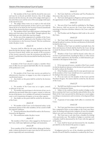 Article 18 1. No member of the Court can be dismissed unless, in the unanimous opinion of the other members, he has ceased to fulfil the required conditions. 2. Formal notification thereof shall be made to the SecretaryGeneral by the Registrar. 3. This notification makes the place vacant.