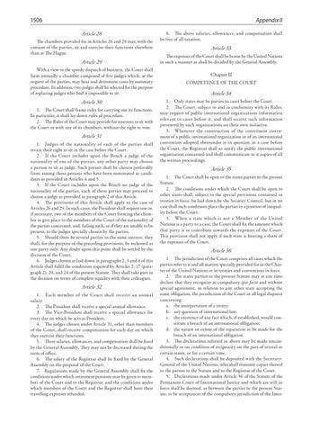 1506 Article 28 The chambers provided for in Articles 26 and 29 may, with the consent of the parties, sit and exercise their functions elsewhere than at The Hague.