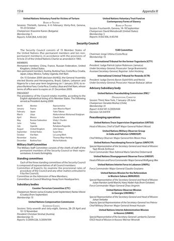 Organizational Committee Session: Third, New York, 7 January–29 June Chairperson: Heraldo Muñoz (Chile) Membership: 31 Report: A/64/341-S/2009/444 Decision: GA 64/414