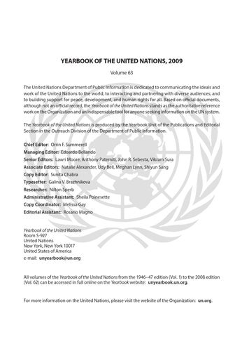 Yearbook of the United Nations Room S-927 United Nations New York, New York 10017 United States of America e-mail: unyearbook@un.org