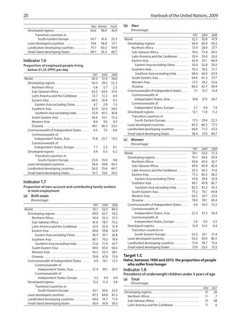 Indicator 1.6 Proportion of employed people living below $1.25 (PPP) per day World . . . . . . . . . . . . . . . . . . . . . . . . . . . . . . . . . . . . . . . . Developing regions . . . . . . . . . . . . . . . . . . . . . . . . Northern Africa . . . . . . . . . . . . . . . . . . . . . . . . . Sub-Saharan Africa . . . . . . . . . . . . . . . . . . . . . Latin America and the Caribbean . . . . . . . Eastern Asia . . . . . . . . . . . . . . . . . . . . . . . . . . . . Eastern Asia excluding China . . . . . . . . . Southern Asia . . . . . . . . . . . . . . . . . . . . . . . . . . Southern Asia excluding India . . . . . . . . South-Eastern Asia . . . . . . . . . . . . . . . . . . . . . Western Asia . . . . . . . . . . . . . . . . . . . . . . . . . . . Oceania . . . . . . . . . . . . . . . . . . . . . . . . . . . . . . . . Commonwealth of Independent States . . . . Commonwealth of Independent States, Asia . . . . . . . . . . . . Commonwealth of Independent States, Europe . . . . . . . . . Developed regions . . . . . . . . . . . . . . . . . . . . . . . . Transition countries in South-Eastern Europe . . . . . . . . . . . . . Least developed countries . . . . . . . . . . . . . . . . . Landlocked developing countries . . . . . . . . . . Small island developing States . . . . . . . . . . . . .