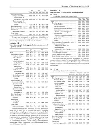 World . . . . . . . . . . . . . . . . . . . . . . . . Developing regions . . . . . . . Northern Africa . . . . . . . . Sub-Saharan Africa . . . . . Latin America and the Caribbean . . . . . . . . Eastern Asia . . . . . . . . . . . . Eastern Asia excluding China . . . . Southern Asia . . . . . . . . . . Southern Asia excluding India . . . . South-Eastern Asia. . . . . Western Asia . . . . . . . . . . . Oceania . . . . . . . . . . . . . . . . Commonwealth of Independent States . . . . . . Commonwealth of Independent States, Asia . . . . . . . . . . . Commonwealth of Independent States, Europe . . . . . . . . Developed regions . . . . . . . . Least developed countries . . . . . . . . . . . . . . . Landlocked developing countries