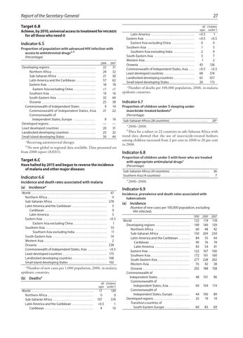 Indicator 6.5 Proportion of population with advanced HIV infection with access to antiretroviral drugsa, b (Percentage) Developing regions . . . . . . . . . . . . . . . . . . . . . . . . . . . . . . . . . Northern Africa . . . . . . . . . . . . . . . . . . . . . . . . . . . . . . . . Sub-Saharan Africa . . . . . . . . . . . . . . . . . . . . . . . . . . . . Latin America and the Caribbean . . . . . . . . . . . . . . Eastern Asia . . . . . . . . . . . . . . . . . . . . . . . . . . . . . . . . . . . Eastern Asia excluding China . . . . . . . . . . . . . . . . Southern Asia . . . . . . . . . . . . . . . . . . . . . . . . . . . . . . . . . South-Eastern Asia . . . . . . . . . . . . . . . . . . . . . . . . . . . . Oceania . . . . . . . . . . . . . . . . . . . . . . . . . . . . . . . . . . . . . . . Commonwealth of Independent States . . . . . . . . . . . Commonwealth of Independent States, Asia Commonwealth of Independent States, Europe . . . . . . . . . . . . . . . . Developed regions . . . . . . . . . . . . . . . . . . . . . . . . . . . . . . . . . . Least developed countries . . . . . . . . . . . . . . . . . . . . . . . . . . Landlocked developing countries . . . . . . . . . . . . . . . . . . . Small island developing States . . . . . . . . . . . . . . . . . . . . . .