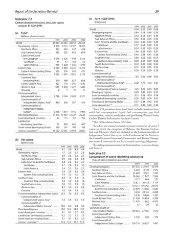 (b) Per capita (Metric tons) World . . . . . . . . . . . . . . . . . . . . . . . . . . . . . . . . . . . Developing regions . . . . . . . . . . . . . . . . . . . Northern Africa . . . . . . . . . . . . . . . . . . . . Sub-Saharan Africa . . . . . . . . . . . . . . . . Latin America and the Caribbean . . Caribbean . . . . . . . . . . . . . . . . . . . . . . . Latin America . . . . . . . . . . . . . . . . . . . Eastern Asia . . . . . . . . . . . . . . . . . . . . . . . . . . Eastern Asia excluding China . . . . Southern Asia . . . . . . . . . . . . . . . . . . . . . . . . Southern Asia excluding India . . . South-Eastern Asia . . . . . . . . . . . . . . . . Western Asia . . . . . . . . . . . . . . . . . . . . . . Oceania . . . . . . . . . . . . . . . . . . . . . . . . . . . Commonwealth of Independent States Commonwealth of Independent States, Asia b . . . . . . . Commonwealth of Independent States, Europeb . . . . . Developed regions . . . . . . . . . . . . . . . . . . . Least developed countries . . . . . . . . . . . . Landlocked developing countries . . . . . Small island developing States . . . . . . . . Annex I countriesc, d . . . . . . . . . . . . . . . . . . .