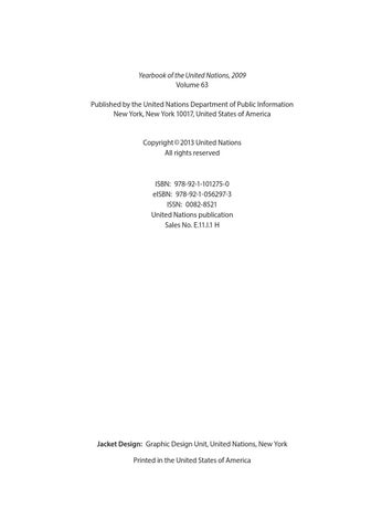Yearbook of the United Nations, 2009 Volume 63 Published by the United Nations Department of Public Information New York, New York 10017, United States of America