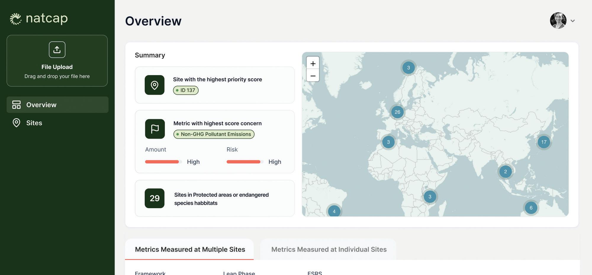 Natcap is a leading nature intelligence provider, offering unparalleled data analytics, delivered on a geospatial platform, paired with world-class science and business expertise that helps companies identify, prioritise, and manage nature-related risks and opportunities. Its Nature Engine transforms raw data into actionable insights, empowering sustainability teams to manage risk, meet regulatory requirements, and make informed decisions for long-term success and resilience. Based in London, Natcap is scaling rapidly, aiming to expand globally, transition to recurring revenue, and lead the nature intelligence market.