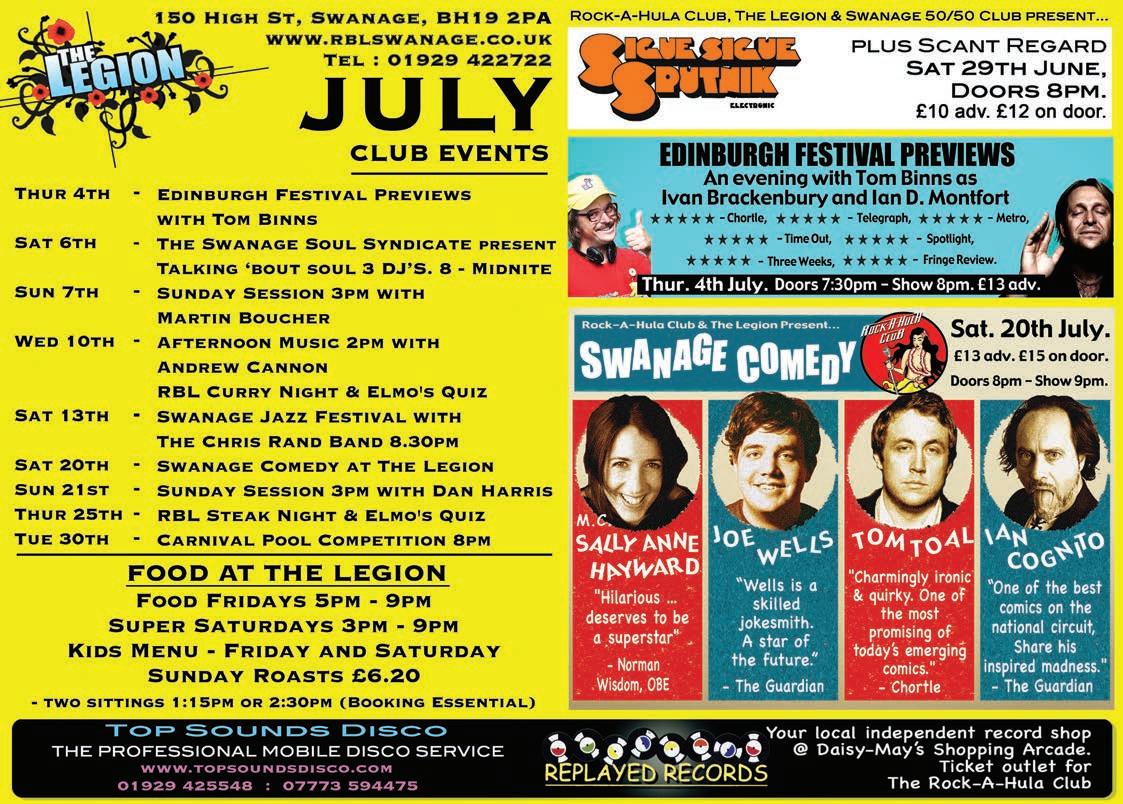 We’ve been discussing the ‘Out of the Blue’ PACT police column with our local police team in recent weeks, and I think you’ll be much happier with the content this month - all relevent, with some interesting facts and figures on recent local crime. Have a read on page 26, and thanks to Serg. Jon McCarthy for taking on board our comments and ensuring that the copy is relevent AND interesting! We also bring you details of the highly-exciting and brand new ‘Swanage Fight Night’, featuring some well-known, blue collar non-fighters stepping into the ring for your entertainment! Details on page 65. Let’s make this a great summer for everyone - locals and visitors alike!