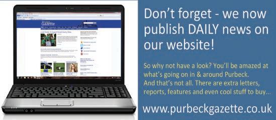 Meetings are subject to change. To double check, see: http://www.dorsetforyou.com/ meetings/purbeck and see ‘dates of council and other meetings’ FREE CAR STICKERS THIS MONTH! Collect from our office in Commercial Road, Swanage on Tues or Thurs! 2 The Purbeck Gazette