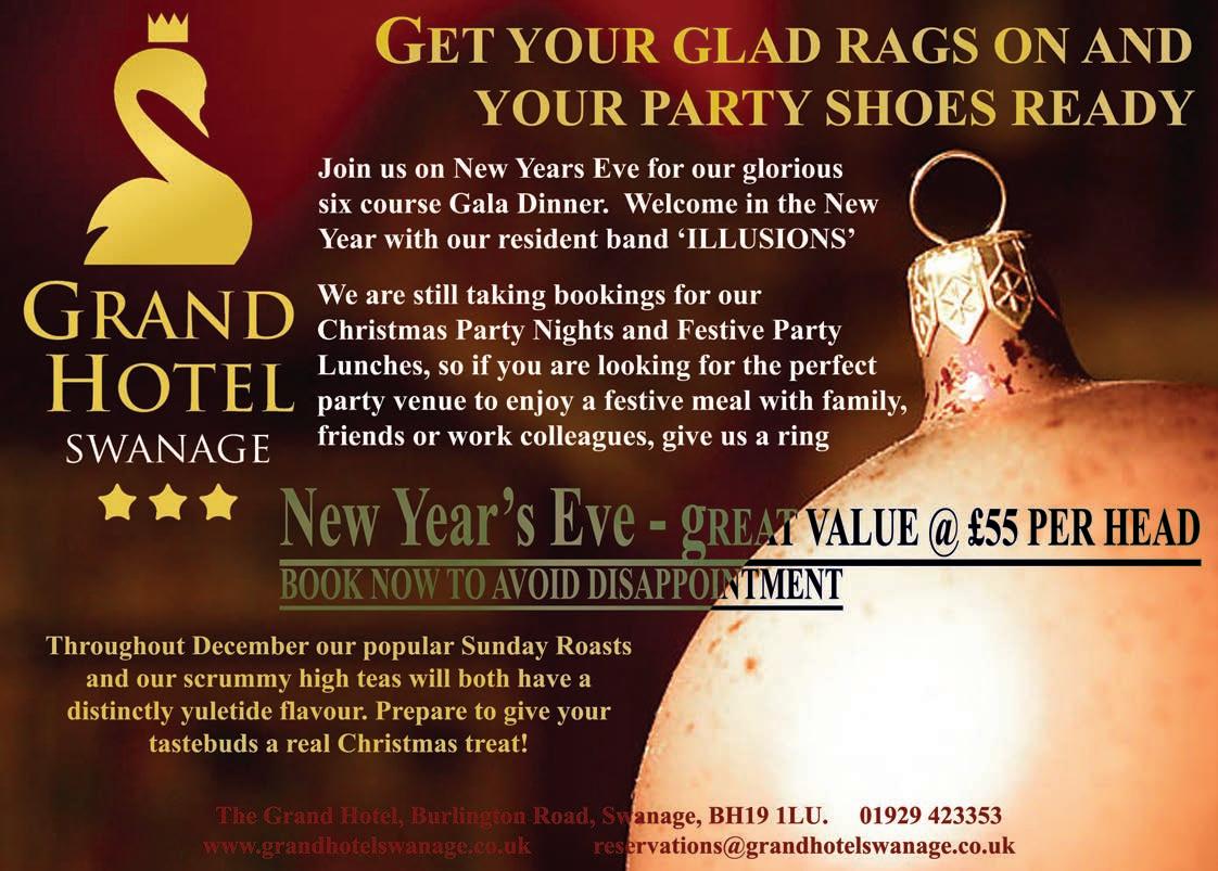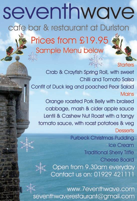 www.purbeckgazette.co.uk The Purbeck Gazette would like to wish all readers a very merry Christmas and an exciting New Year! Man & Van 07767 479438 Fully licensed & insured Half the price of a skipand we do all the work! Rubbish Clearance available to hire Our feature for the JANUARY EDITION is ‘Banish those winter blues!’ Deadline: 9th December Usual discounted advertising rates and FREE editorial! Call Joy to book on 01929 424293
