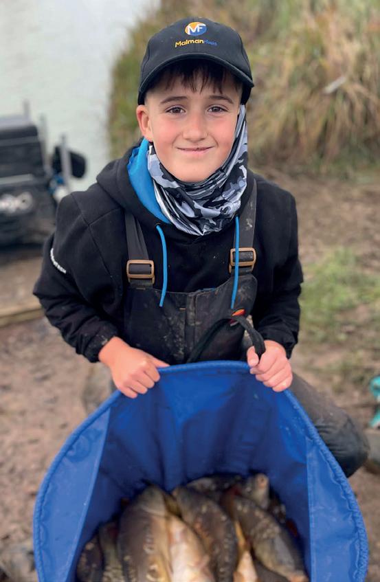 Angling Society juniors gathered at an unseasonably mild, but slightly wet Todber Manor.