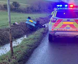 The vehicle, a small four-door hatchback, left the road some time around 3.15pm at Martinstown. Firefighters from Dorchester attended the incident.