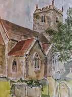 Continue westward as far as the next road and turn left, south, passing the church, then turn right passing the school. Then join a narrow footpath that takes you down to a bridge over the parish boundary again. Turn back and retrace your steps back to your starting point by the church.